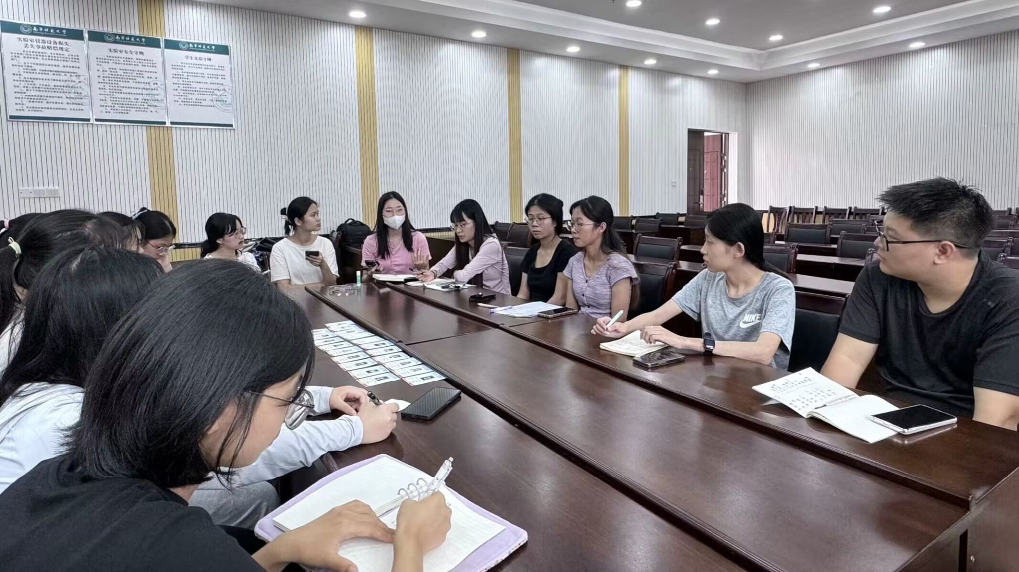 会上,实践队队长梁月怡向各位队员提出了本次活动的具体要求和注意事项,强调了这次活动的重要性,并希望大家能够全身心地投入到活动中去,为乡村振兴贡献自己的力量。同时,梁队长还提醒各位队员,在努力完成任务的同时,要时刻注意自身的健康安全,并做好活动物资的妥善保管。随后,各小组组长就目前的工作进度分别进行汇报,详细介绍了前期的准备工作,确保活动能够顺利开展。接着,副队长蓝佳怡代表上一期“三下乡”团队分享了宝贵的经验和建议,为大家提供了很好的参考。最后,针对活动中可能遇到的问题,大家进行了热烈讨论并制定了应对措施。