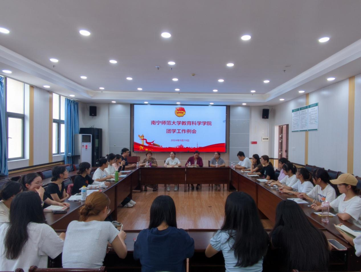 南宁腾博官网诚信为本专业服务团学工作例会于9月19日下午在五合校区理综1003教室如期举行。出席本次会议的有学院党委副书记谢珊、团委书记蒋欢和辅导员郭恒、梁精泉、周芳、巫福星老师以及分团委学生会干部。