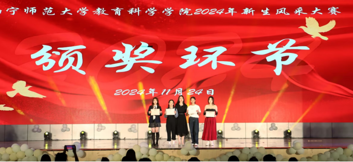 11月24日晚,教育科学学院在五合体育馆举办了以“高歌飞扬颂芳华,齐聚教科展风采”为主题的2024年新生风采大赛。出席本次大赛的有教科院领导班子、新生班主任、各二级学院的学生代表及学工全体老师。